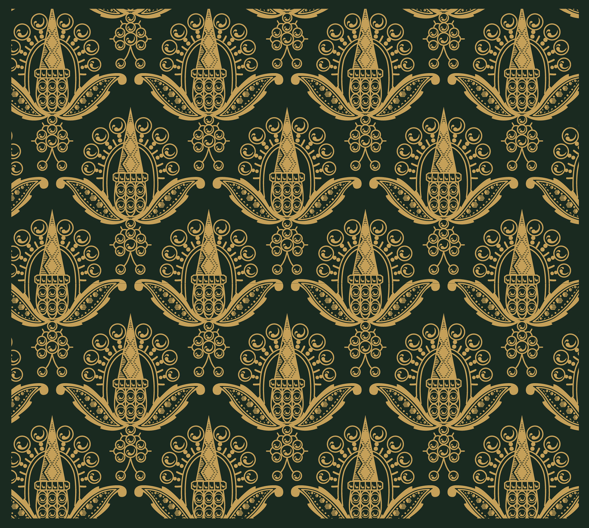 Imperial Malachite meets Burnished Brass. This high-contrast palette is designed for nocturnal, sophisticated environments. The pattern functions as a technical master-file ready for translation into physical surfaces.